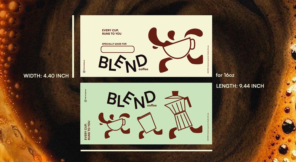 BLEND is a coffee brand built for the fast-moving, flavor-loving generation. We deliver café-quality coffee straight to your doorstep....no lines, no pretentious menus, just good coffee, fast. Whether you're into a bold espresso, a smooth cold brew, or something fruity and light, we’ve got your fix. Our identity blends speed, quality, and a playful charm, with a running coffee cup logo that says it all....we’re always on the move, just like you. At BLEND, we believe great coffee shouldn’t come with a side of snobbery or a 15-minute wait. It should be fun, fast, and ridiculously good.